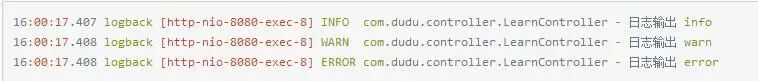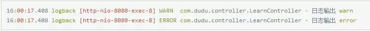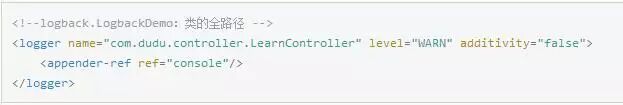 控制com.dudu.controller.LearnController类的日志打印,打印级别为“WARN”