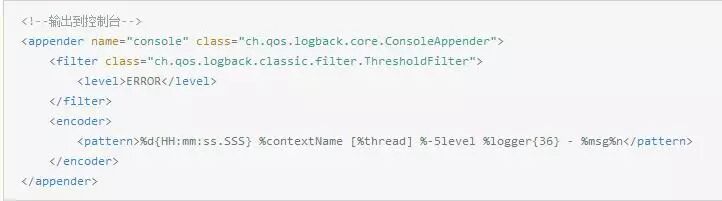 root接到下级传递的信息,交给已经配置好的名为“console”的appender处理,“console”appender将信息打印到控制台;