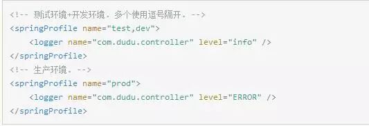 据不同环境(prod:生产环境,test:测试环境,dev:开发环境)来定义不同的日志输出,在 logback-spring.xml中使用 springProfile 节点来定义,方法如下: